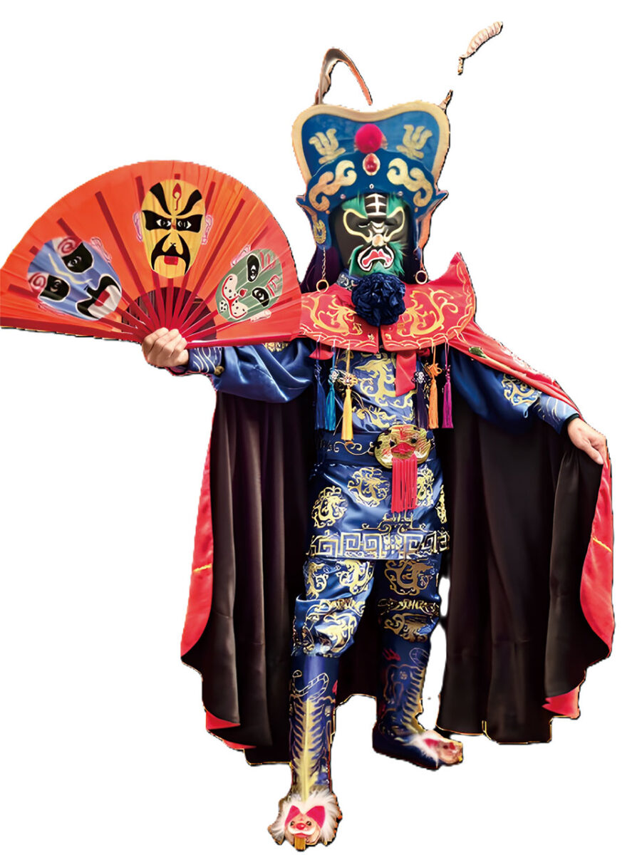 手を使わず、顔につけたお面が一瞬にして変わります。