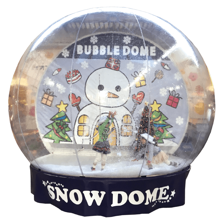 ドーム内で雪フレークをブロアーで舞上げると、ドーム内はまるで雪景色となります。