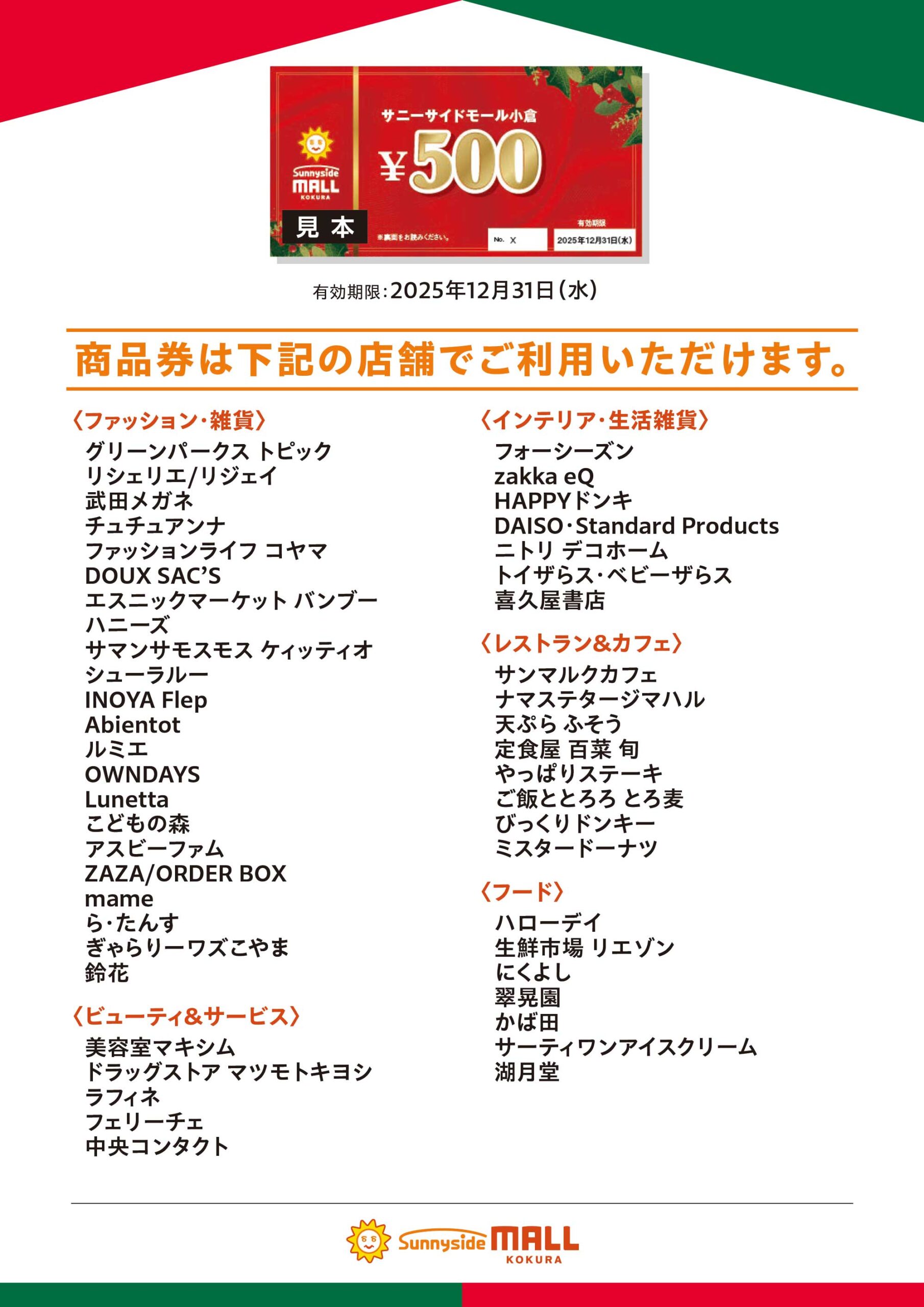 🎁6等/800本 サニーサイドモール小倉 お買い物券500円分