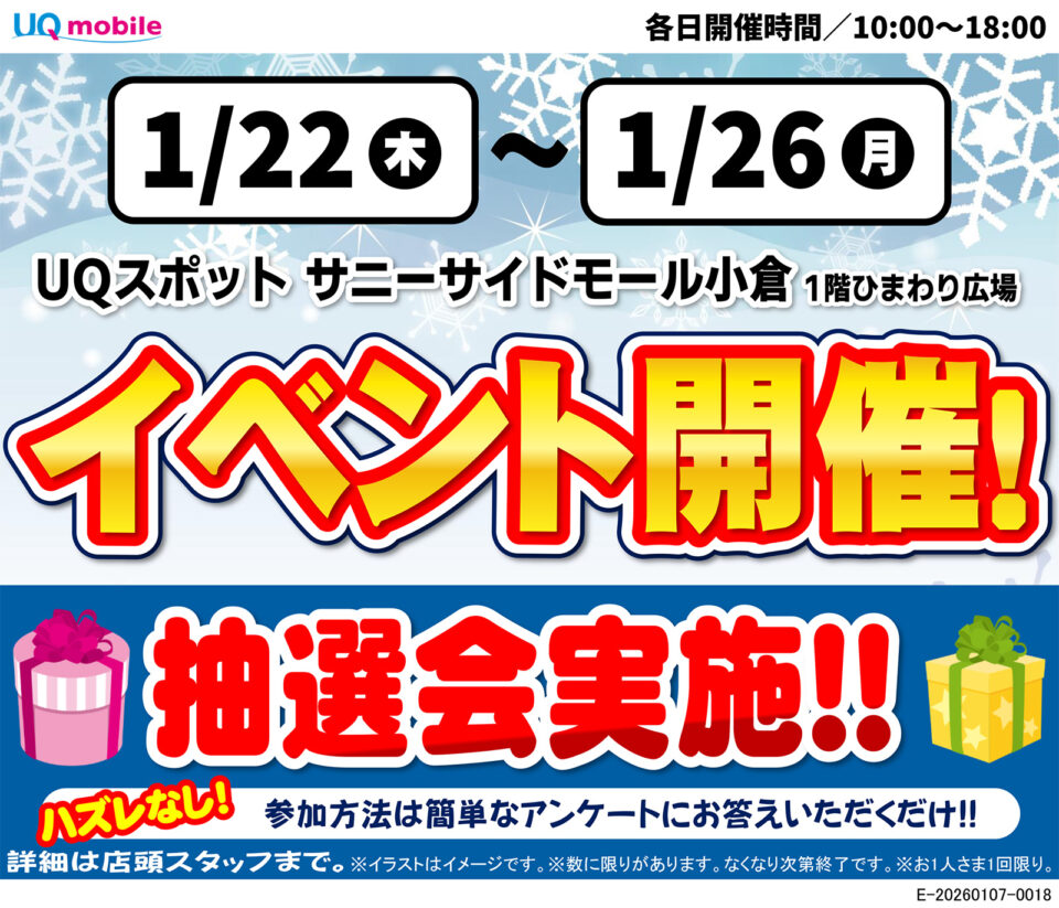 【UQ mobile】UQスポット サニーサイドモール小倉 イベント開催!!【1/22~1/26】