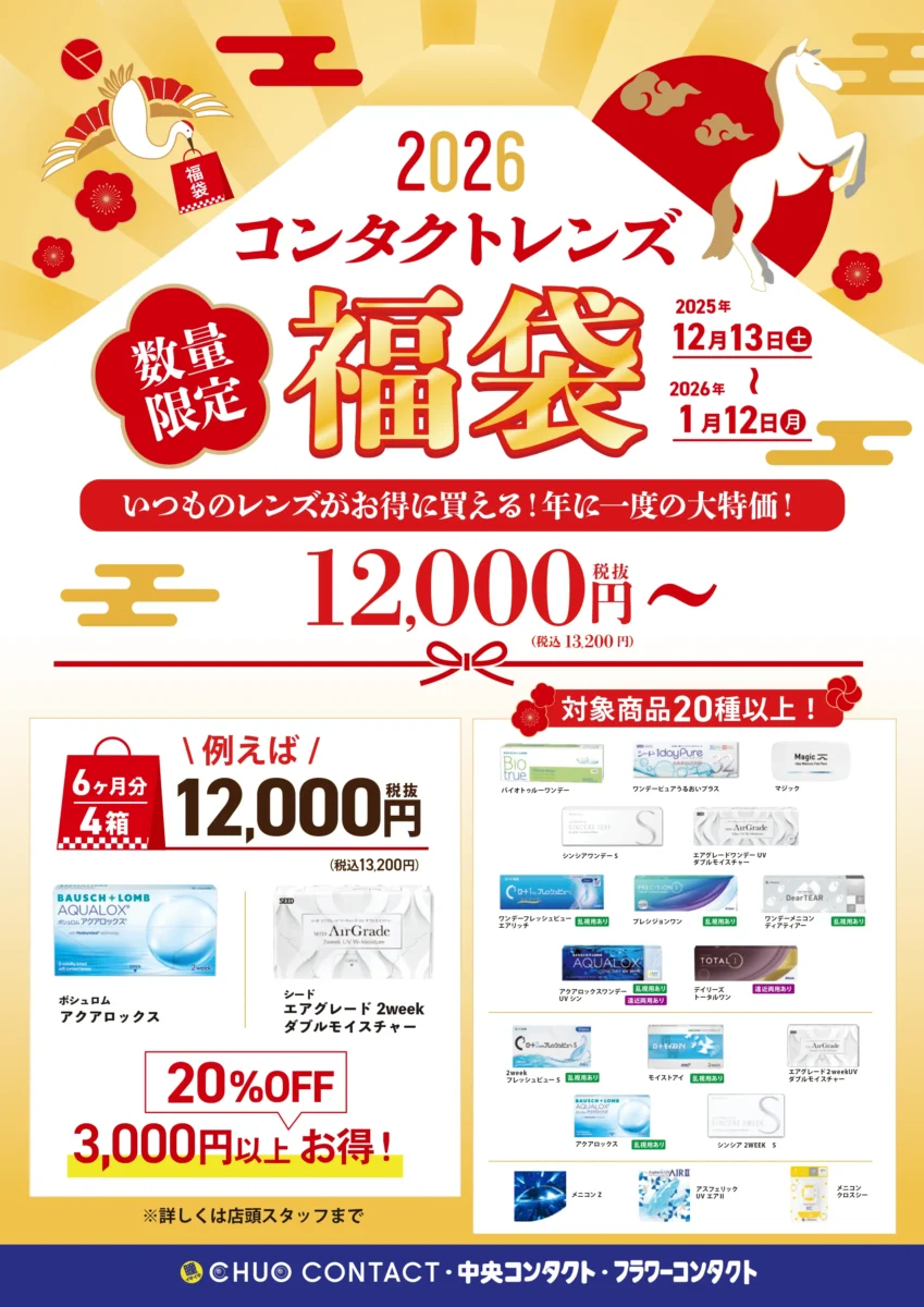 コンタクトレンズの他にケア用品なども福袋になっております。